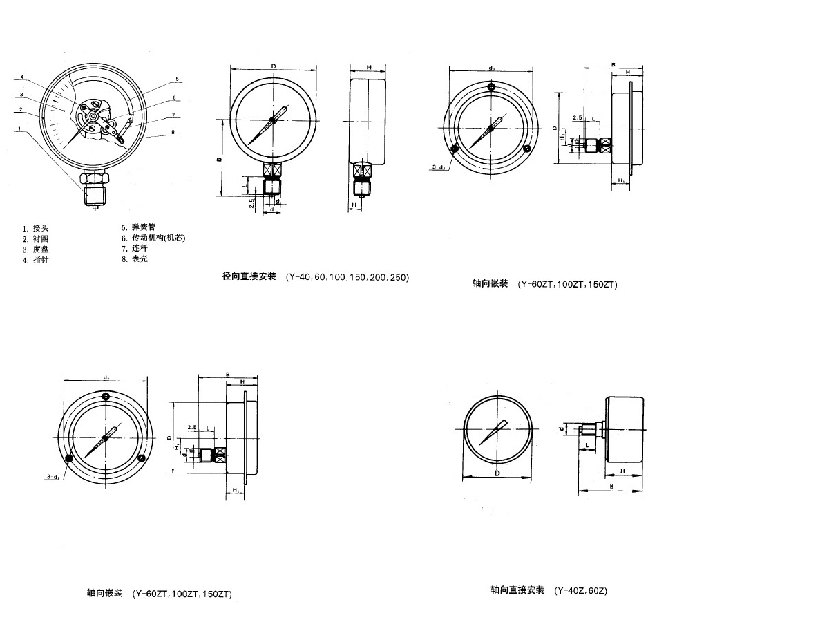 儀表的測(cè)量系統(tǒng)由接頭、彈簧管和傳動(dòng)結(jié)構(gòu)組成。